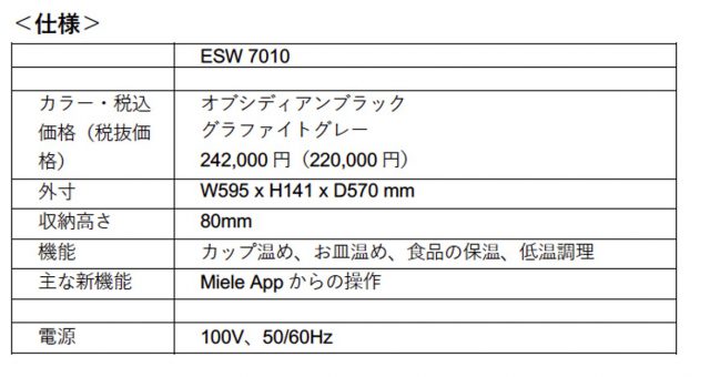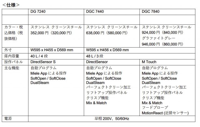 ミーレ・ジャパン(株)から、「Generation 7000」シリーズより、 スチームクッカー・コンビスチームオーブン・グルメビルトインウォーマー、ビルトインコーヒーマシンなど計7モデルが発売されました。