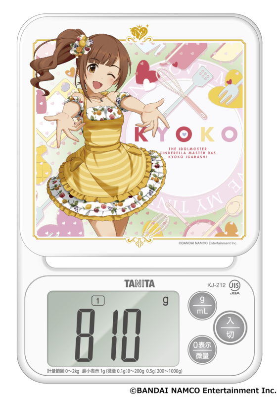 (株)タニタから、ソーシャルゲーム『アイドルマスター シンデレラガールズ』とコラボレーションし、同作に登場するキャラクターである五十嵐響子をフィーチャーしたデジタルクッキングスケール「アイドルマスター シンデレラガールズモデル(五十嵐響子)」が発売されます。