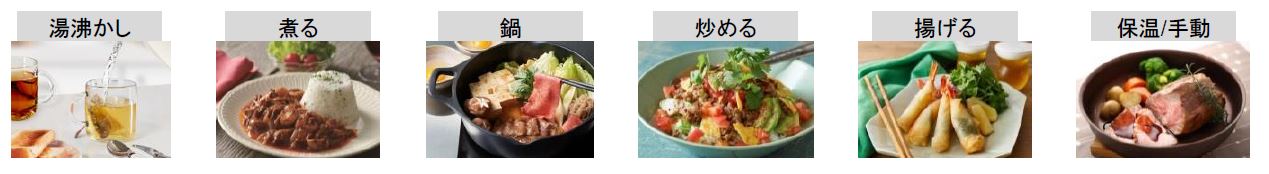 日常的によく使う6つの調理プログラムを搭載し、それぞれのメニューに最適な温度で調理します。