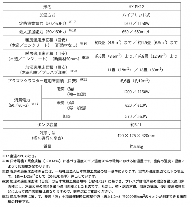 ●プラズマクラスター加湿セラミックファンヒーター「HX-PK12」