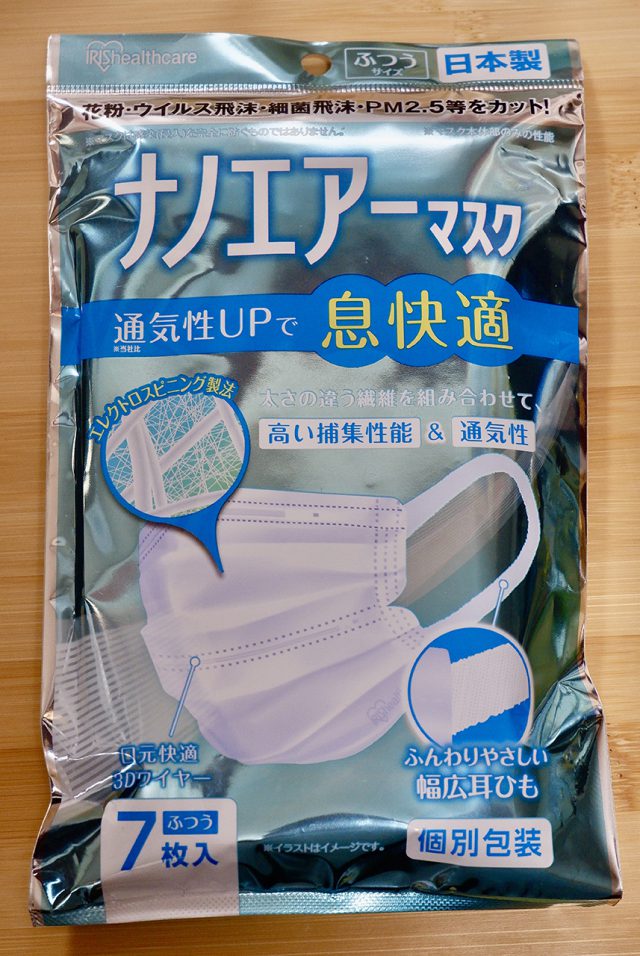 今回、いち早くJIS規格に認証されたアイリスオーヤマの「ナノエアーマスク」で確認してみましょう。