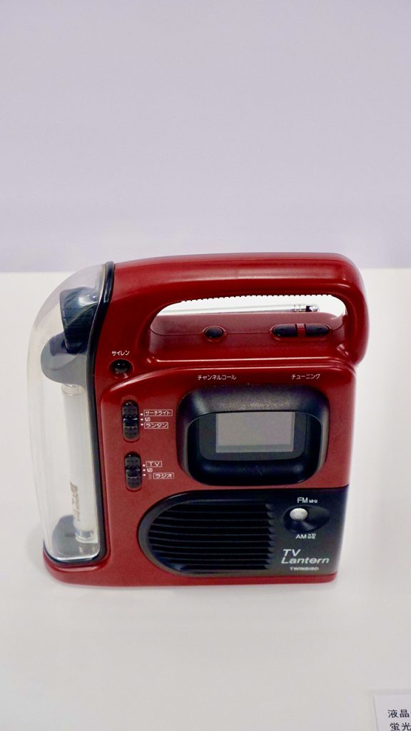 いわゆる複合家電。今のスマホと比べても画面は小さいですね。当時はアナログ波でしたから、どの位の画質だったのでしょうかね。災害を想定すると今でもある組み合わせ。しかし、これ以降、蛍光灯→LED、そしてバッテリーの進化がものすごく大きいです。今だと、スマートフォンの一部の機能だとしか言えないですね。