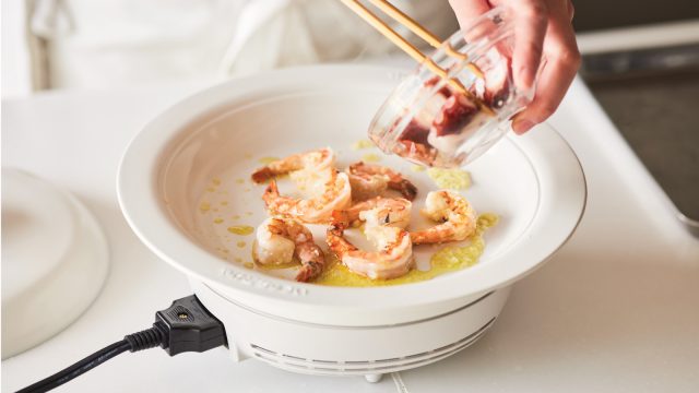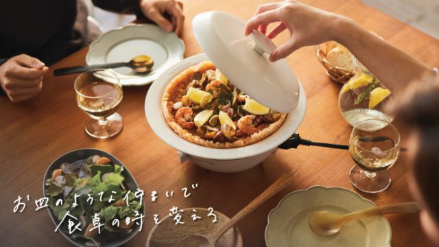 1人分をお皿1枚で完結!つくる・食べる・片づけるが手軽に、時短もできるシンプル調理機器です。IH調理器なのに、まるでお皿のような佇まいで毎日の暮らしに溶け込みます。朝昼晩いつでも、最後のひと口まで温かくおいしいワンプレート料理が楽しめます。