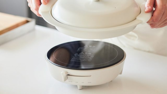 焼く・煮る・蒸す、色々な調理ができて、朝・昼・晩・おつまみやデザート等、いつでも手軽にワンプレート料理が楽しめます。ありそうでなかった、一人暮らしにも便利なサイズ感のIHホットプレートです。