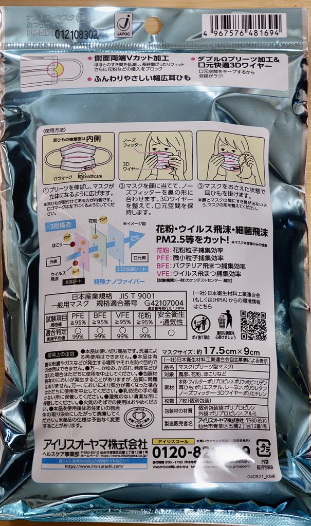 しかし、これだけ安心感のあるマスクも少ないでしょう。満員電車、人混みで、着けたいマスクです。