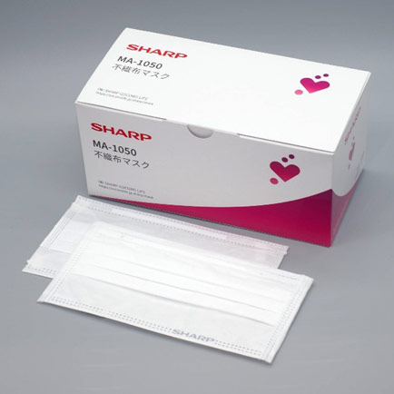 シャープのマスク(通常型)と紙箱(個装なし、50枚入)。