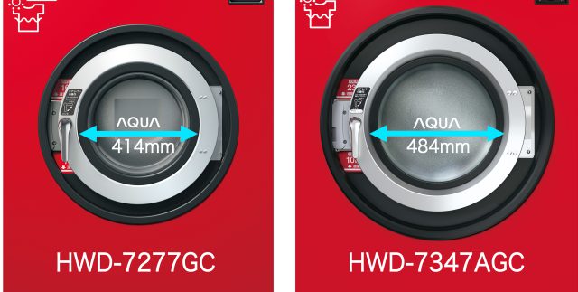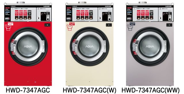 アクアはこれまでコインランドリー向け機器として、洗濯乾燥容量が10kgと16kgの大型洗濯乾燥機を展開しきました。しかし、今回、増加する洗濯物量や大物洗いのニーズに対応するべく、洗濯容量34kg/洗濯乾燥容量23kgの超大型コイン式全自動洗濯乾燥機(HWD-7347AGC:以下、本モデル)が発売されます。