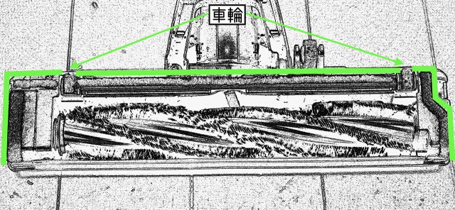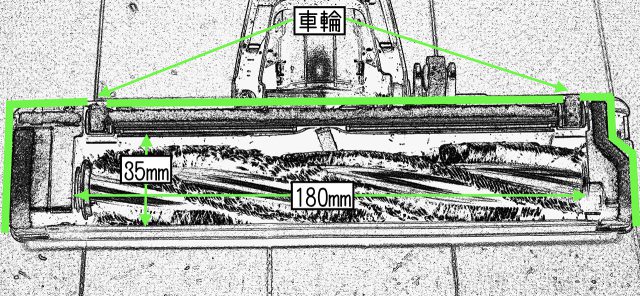 まず、ヘッド。できる限り小さく、吸い込むべき枠を小さくします。ヘッドは床を長方形に切り取り、その長方形内のホコリを吸い取ります。そして、その長方形が移動していく形で全面を掃除を行います。