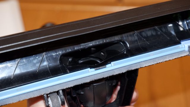 ヘッドは、基本、前後に移動するよう設計されています。実際は移動しながら、ホコリを吸い込むため、ヘッド前方はやや開け気味に設計します。そこから、前方にあるゴミ、ホコリを空気と共に吸い込むのです。しかし吸い込んでいる大半は空気です。このため、前方の隙間を狭くしてやれば、空気の吸い込まれ速度が上がるため、パワーがない掃除機でも上手く吸い込むことができるのです。