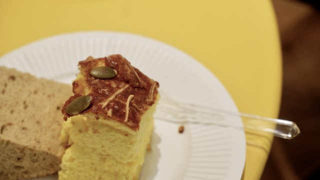 ○筆者印象 チーズとかぼちゃの味のバランスがよく、美味しく食べられる。上にトッピングされた炒めたカボチャの種はとても美味しい。これだけでも食べたいくらい。