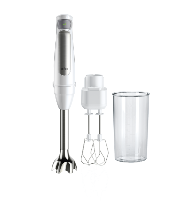 ハンドブレンダーの命ともいえるモーターは、ブラウンが独自に開発したドイツ品質のハイパワー設計。また、 人間工学に基づいたデザインは、すっと手になじむだけでなく、しっかり持てて滑りにくいので、ハイパワーの使用時でも手軽に扱えます。●新アタッチメント(MQ7005BWH):お菓子づくりに便利「ダブルビーター」