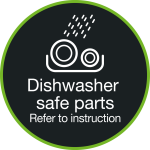 専用計量カップに洗剤とぬるま湯を入れて10~20秒スイッチを入れるだけで、 容器と刃の周りのお手入れ可能。 本体を含むー部を除き食器洗い機でも洗えます。ブラウン