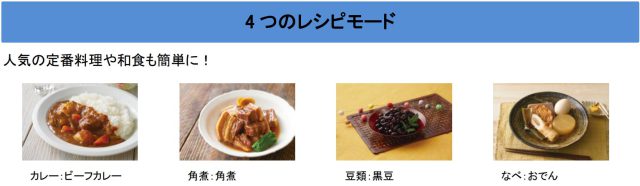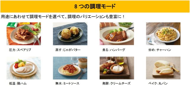 デジタルディスプレイに表示される16種類のモードで、時短料理から本格料理まで幅広い料理をおいしく作れます。