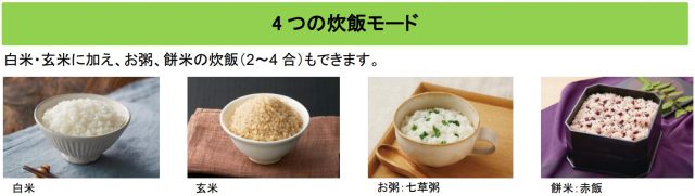 ※予約調理の場合:炒め、低温、発酵、ベイク、保温を除く。生肉・生魚・生卵・生魚介類などの調理には使用しないでください。腐敗やにおいの原因となります。保温の場合:炒め、低温、発酵、ベイクを除きます。