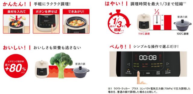■「ラクラ・クッカー プラス コンパクト電気圧力鍋」製品特長