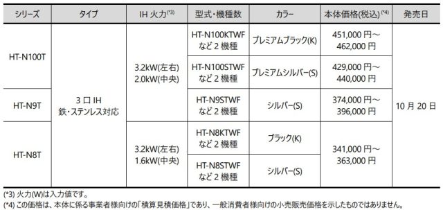 このほか、IHクッキングヒーター「火加減マイスター」シリーズとして、当モデルと一部仕様の異なるHT-N9T・N8Tシリーズを同時発売します。
