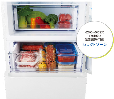 ●-20℃~5℃の温度調節ができる「セレクトゾーン」を搭載!(JR-NF326B、JR-NF262B)