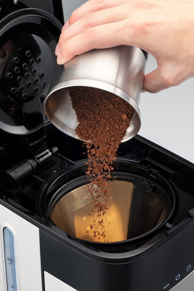 挽いたコーヒー豆は直接コーヒーメーカー等のフィルターへ。