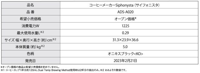 タイガー魔法瓶(株)(以下 タイガー)から、サイフォン式コーヒーの抽出の自動化を実現した、見た目も味わいも楽しめる新たなコーヒーメーカー「Siphonysta(サイフォニスタ)」が、2023年2月21日(火)より発売されます。