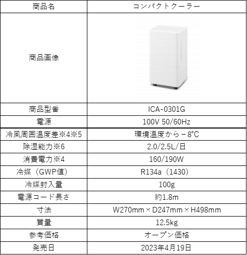 アイリスオーヤマ(株)から、壁際に設置できキッチンや 脱衣所など限られたスペースでも使用できる「コンパクトクーラー」が、2023年4月19日より全国のホームセンター、及びインターネットサイトを中心に、オープン価格にて発売されます。