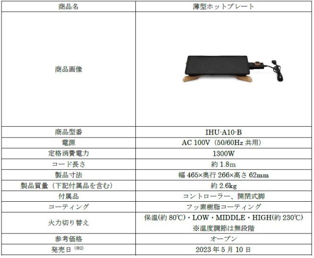 ■「薄型ホットプレート」公式サイト https://www.irisohyama.co.jp/kitchen/ihu-a10/