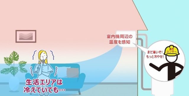 人が生活する床付近は十分涼しくなっていても必要以上に運転してしまい、消費電力の増加につながることがあります。