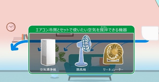 ~室内の「温度ムラ」を抑えることも節電に!2.~ 空気清浄機などを活用して空気を撹拌しましょう。