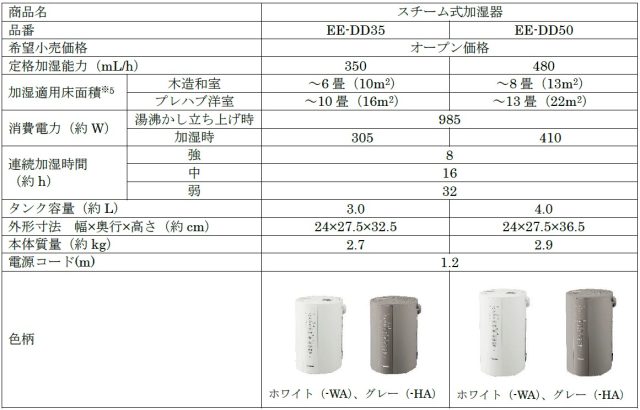 象印マホービン(株)(以下 象印)から、手入れのしやすさで好評の「スチーム式加湿器」EE-DD型(2サイズ・2色)が、2023年9月1日より発売いたします。