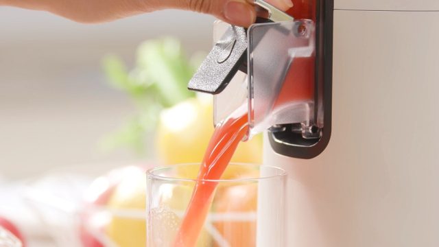 ジューサー前面には搾汁が進むにつれあがる「ジュースポケット」がついているので、搾汁量やジュースの色を直感的に確認できます。