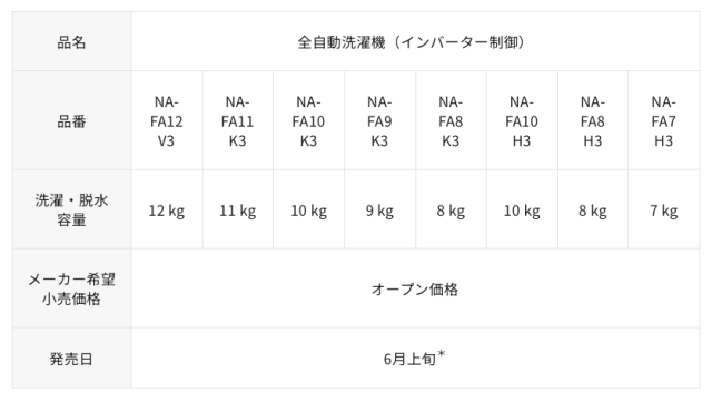 ●NA-FA12V3の詳細・仕様 https://panasonic.jp/wash/products/NA-FA12V3.html