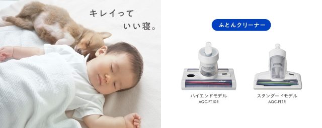 アクア(株)から、UV照射と吸引を同時に行うAQUA初のふとんクリーナー「AQC-FT10R」(ハイエンドモデル)と「AQC-FT1R」(スタンダードモデル)が2024年8月7日から発売されます。