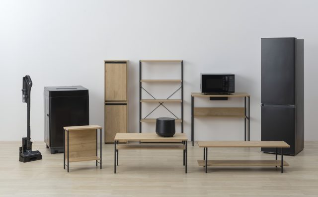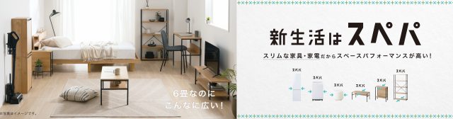 今回発売する「スぺパセット」は、家電や家具の幅や奥行き、高さなどをコンパクトにすることで、限られた部屋のスペースを広く有効に活用することができます。このセットには家電は冷凍冷蔵庫、全自動洗濯機、オーブンレンジなど、家具はセンターテーブルやAVボード、ラックなど新生活に必要な商品がラインナップされています。