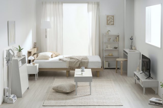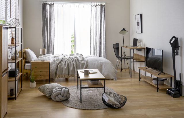 ●コンパクト設計の家電・家具で限られたスペースを有効活用 家電や家具の幅や奥行き、高さなどをコンパクトにすることで限られた部屋のスペースでも広く有効に活用できます。部屋全体に対する家電や家具の専有面積が減少することで、同じ部屋の広さでも広々と使用できます。
