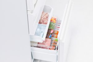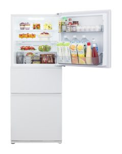 ●大容量・3段ケースの冷凍室 冷凍室が82Lの大容量で、整理整頓がしやすい3段ケースを採用。上段には氷や生鮮食品、中段にはホームフリージングする食品や使いかけの冷凍食品、深さのある下段には冷凍食品や500mlの冷凍用ペットボトルを縦に収納できます。また、便利な自動製氷機能付きです。