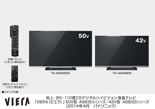 パナソニック(株)から、視聴者のライフスタイルに合わせたコンテンツへのアクセスを、音声操作が可能な音声タッチパッドリモコン等により快適・手軽にできるビエラTH-50AS630、TH-42AS600を4月中旬より、オープン価格にて発売されます。