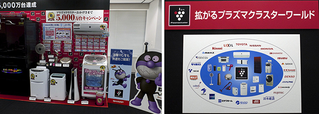 左)プラズマクラスターを搭載した商品群。バイキンマンのバイは黴、キンは細菌の意味。