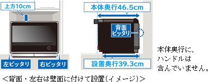 ■背面・左右を壁面にピッタリ付けて設置可能(ER-MD100以外に採用)
