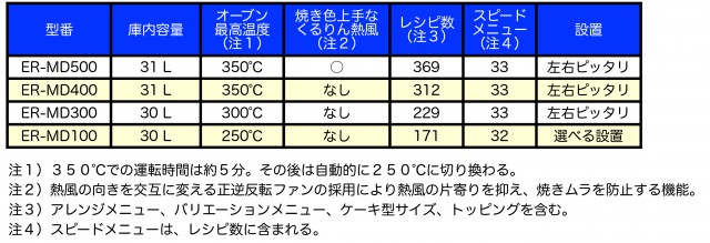 また同シリーズの「石窯ドーム ER-MD400」が6月中旬、「石窯ドーム ER-MD300」が7月上旬、「石窯ドーム ER-MD100」が7月中旬に、それぞれオープン価格にて、販売されます。