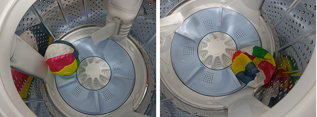 ちなみに左右の撹拌は一種の渦ですので、衣類は中央部、つまり内側パルセーターの上に寄ります。
