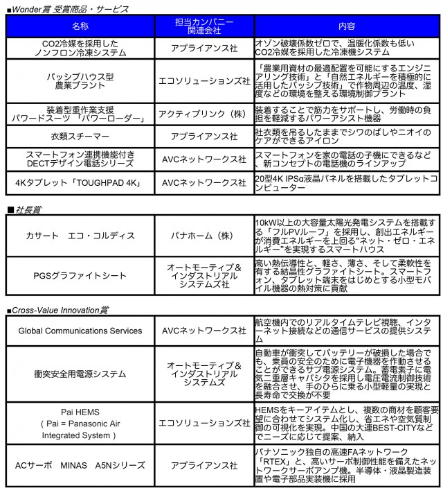 Wonder賞の6点。(写真はパナソニックのホームページより転載)