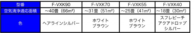 約6畳の試験室で、本体を壁際に設置し運転。対向壁際付近の床上でハウスダストを発生させ、本体前方床上付近まで到達する時間を比較。 (F-VXK90:約18秒、F-VXJ90:約28秒)(F-VXK70:約24秒、F-VXJ70:約39秒)(F-VXK55:約52秒、F-VXJ50:約78秒)。空気清浄運転・ハウスダスト気流時。パナソニック独自の試験条件による評価。