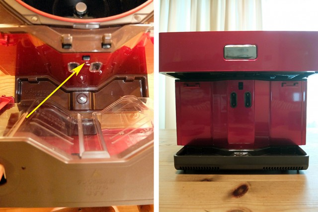 2つめは、洗浄のためのパーツを外すと蓋が開きっぱなしになることです。(同写真参照)