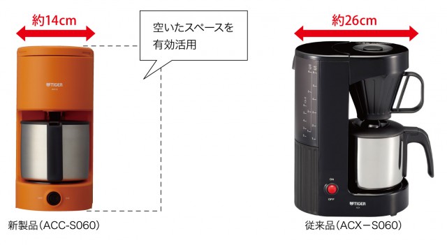タイガー魔法瓶(株)から、サーバーだけでなくカップにも直接ドリップできるステンレスサーバータイプのコーヒーメーカーACC-S060が、オープン価格にて、2014年8月下旬に発売されます。