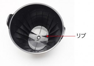 リブを深くしてペーパーとフィルターの間に空間をつくり、コクのある奥深い味わいを抽出するじっくり蒸らしを実現。