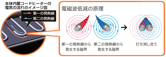 さらに独自の「電磁波99%カット」機能や自動的に電源を切る「切タイマー」機能などの安心機能も全機種に搭載。直接肌に触れて暖かさを得る電気カーペットを安心して使用でき、この機能は1999年の商品化以来、継続して搭載しています。