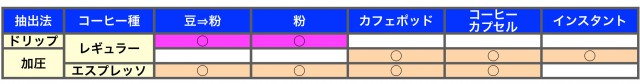 この稿でお話するコーヒーメーカーは、下表「マゼンダ」の部分です。