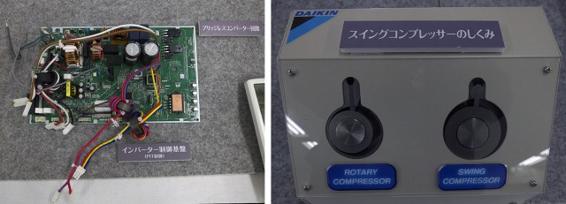 左)PIT制御基盤、右)スイング圧縮機(コンプレッサー)