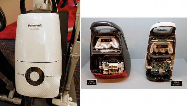左)パナソニック パック式掃除機 MC-JP500G。外装も凝った作り。