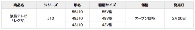 東芝ライフスタイル(株)より、液晶パネル背面全体に高輝度LEDを配置した広色域全面直下LEDバックライトのパネルにより、鮮明で豊かな色彩と高いコントラストを実現したプレミアム2Kモデル「レグザJ10シリーズ」3モデルが、オープン価格にて、2月20日から発売されます。