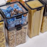 百均。いいですね。とりあえず買いには持ってこいです。また使用数量の多いモノを買うのにもピッタリという感じ。冷蔵庫などの食材の保管、いわゆる「食品コンテナ」などもその例ですね。
